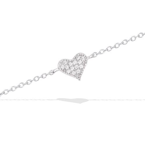 Bracelet en argent avec un motif de coeur orné de oxydes blancs en pavé.