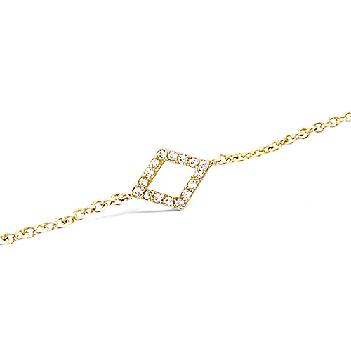 Bracelet élégant en plaqué or, présentant un motif losange évidé orné d'oxydes de zirconium blancs. Sa structure délicate met en valeur un jeu de lumières avec ses pierres brillantes.
