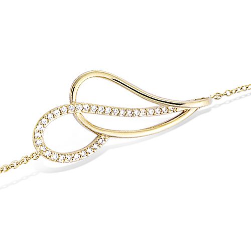 Ce bracelet croisé en plaqué or arbore un motif goutte ajouré, accentué par des oxydes de zirconium blancs. Les détails délicats du pavage ajoutent une touche de brillance à son design structuré.