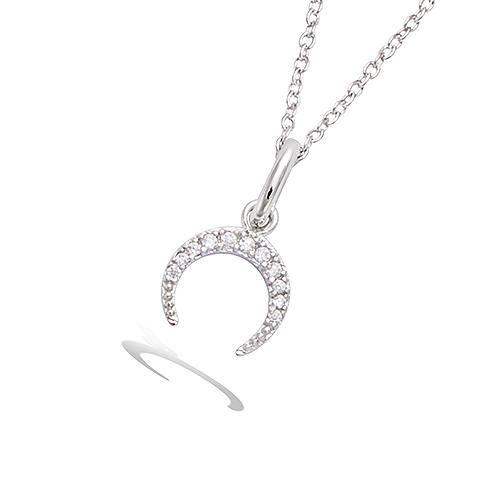 Collier avec motif de croissant de lune et oxydes blancs.