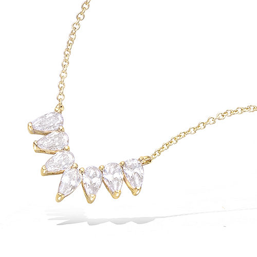 Ce collier en plaqué or est orné d'oxydes de zirconium blancs. Le motif central présente un sertissage délicat, mettant en valeur l'éclat des pierres.