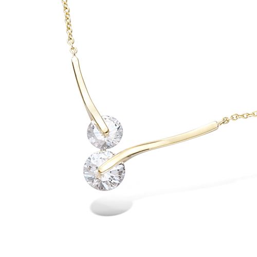 Ce collier en plaqué or arbore un élégant motif double habillé d'oxydes blancs. La structure fluide des lignes et la disposition des pierres créent un jeu de lumière raffiné.