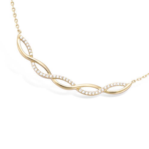 Collier en plaqué or au design tressé, orné d'oxydes de zirconium blancs. La délicate structure entrelacée met en valeur un pavage lumineux de pierres scintillantes.