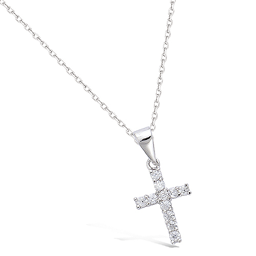 Pendentif croix oxydes blancs - Argent 925