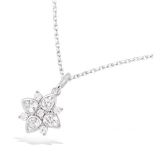 Pendentif en forme de fleur avec des oxydes blancs sertis clos.