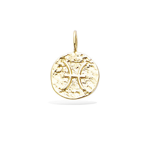 Ce pendentif en plaqué or représente le signe du zodiaque Poisson. Sa surface texturée met en valeur le motif central avec élégance.