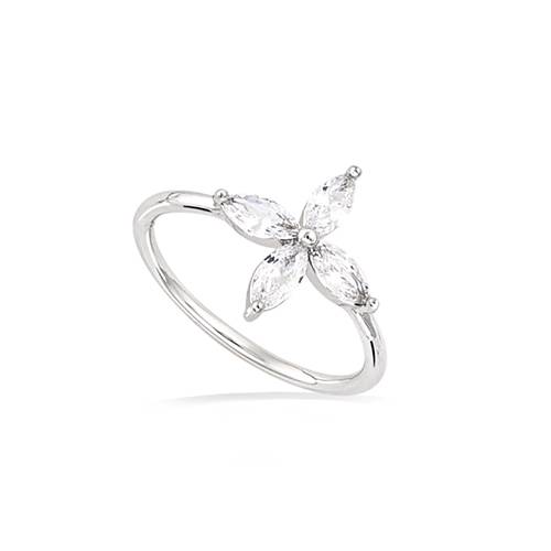 35 € - Bague ouverte fleur oxydes blancs - Argent 925