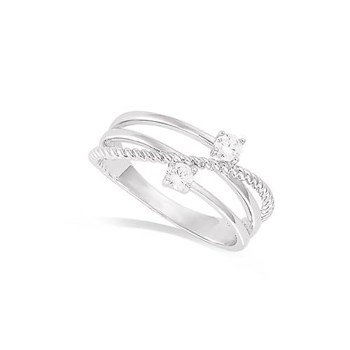 32 € - Bague solitaire croisée oxydes blancs - Argent 925