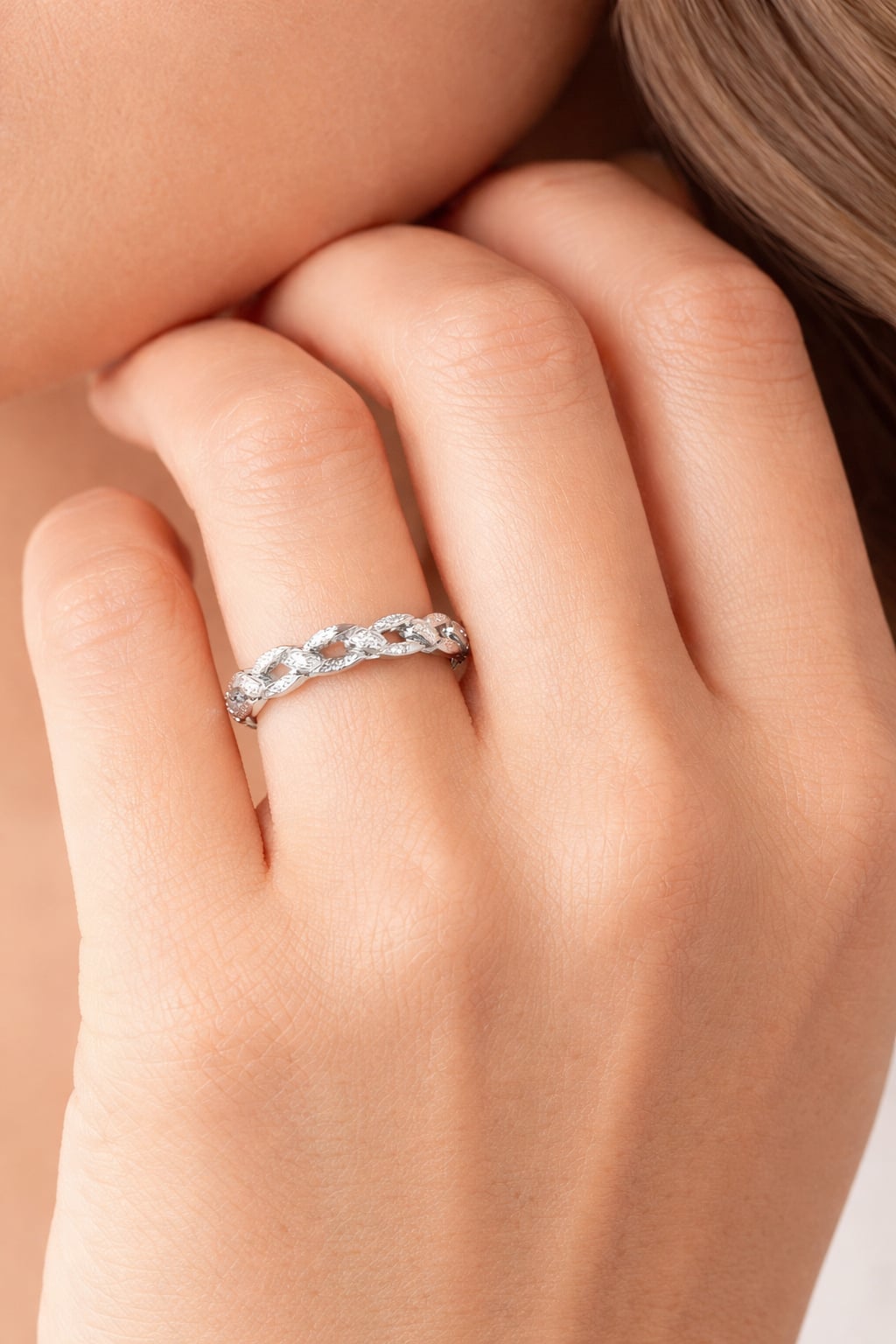 36 € - Bague tressée oxydes blancs - Argent 925