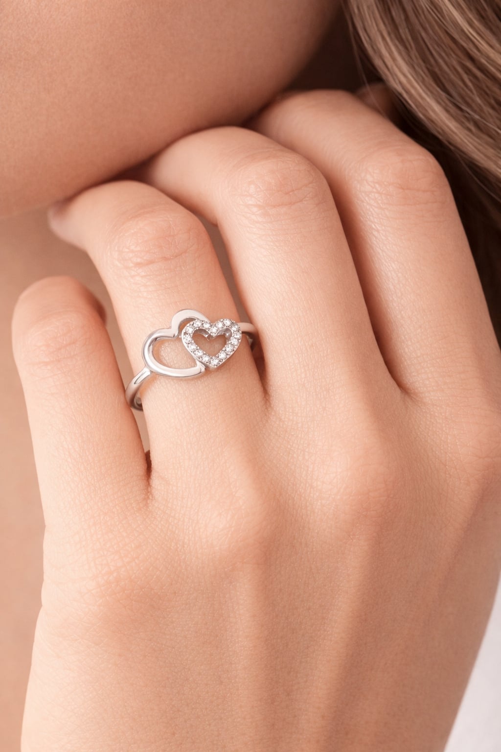 - Bague double coeur oxydes blancs - Argent 925