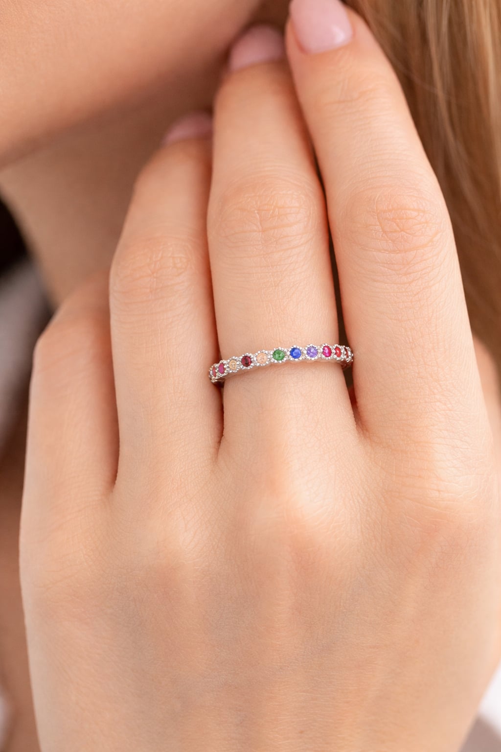 18 € - Bague alliance multicolore serti clos - Argent 925