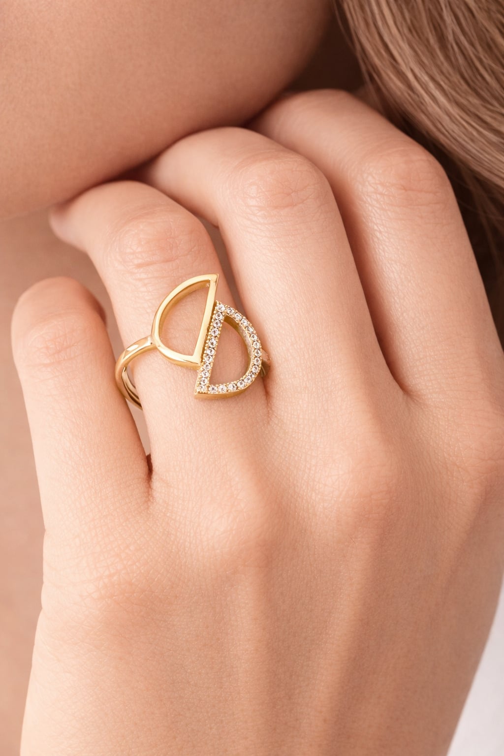 30 € - Bague demi-cercles évidés oxydes blancs - Plaqué Or