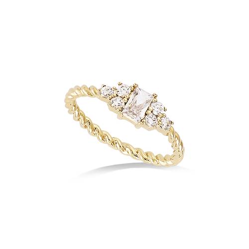 37 € - Bague alliance torsadée carrée oxydes blancs - Plaqué Or