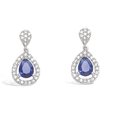 26 € - Boucles d’oreilles goutte en oxydes blancs et verre bleu saphir - Argent 925