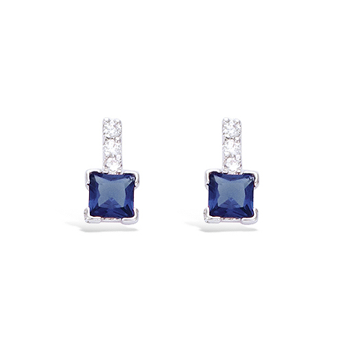 32 € - Boucles d'oreilles pendantes carrées bleues zirconiums - Argent 925