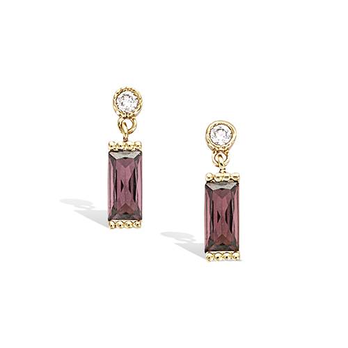 38 € - Boucles d’oreilles pendantes rectangulaires améthystes diamètre 4 mm - Plaqué Or
