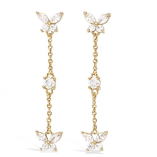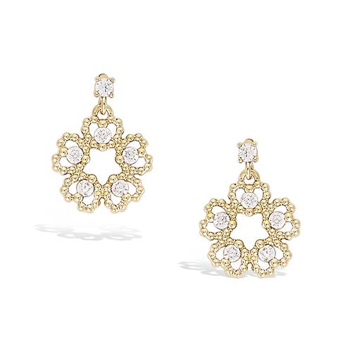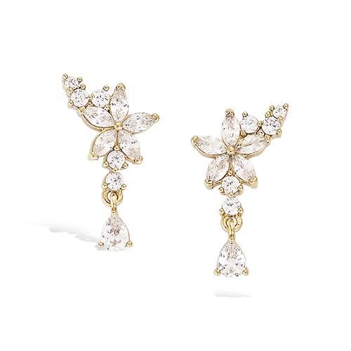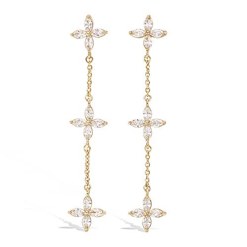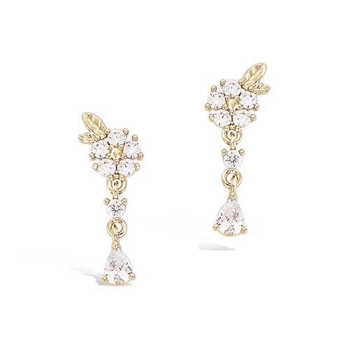 42 € - Boucles d’oreilles pendantes florales oxydes blancs - Plaqué Or