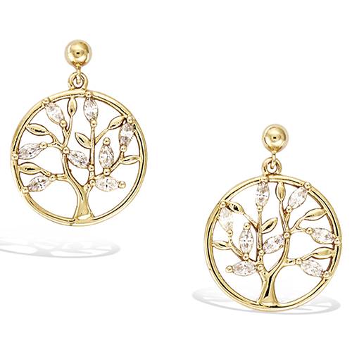 - Boucles d’oreilles pendantes cercle arbre de vie oxydes blancs - Plaqué Or