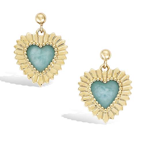 42 € - Boucles d’oreilles pendantes cœur amazonite véritable - Plaqué Or