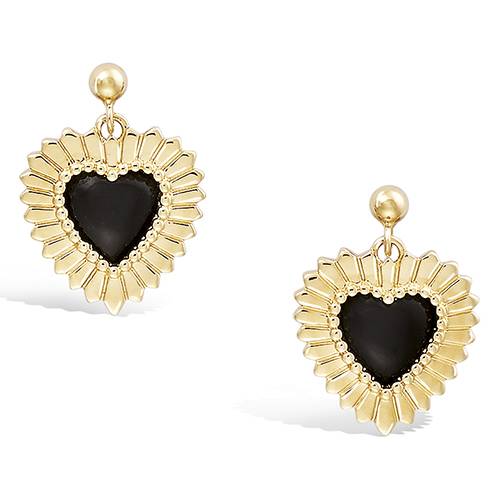 37 € - Boucles d’oreilles pendantes cœur onyx véritable - Plaqué Or