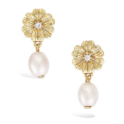 42 € - Boucles d’oreilles pendant forme fleur perle - Plaqué Or