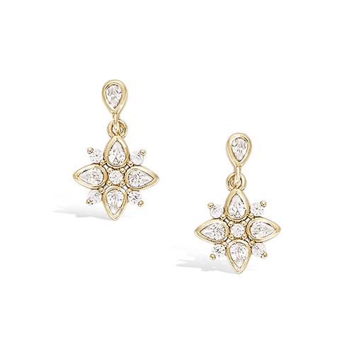 42 € - Boucles d’oreilles pendantes fleur oxydes blancs - Plaqué Or