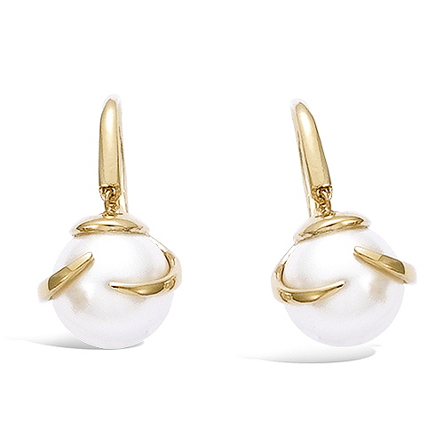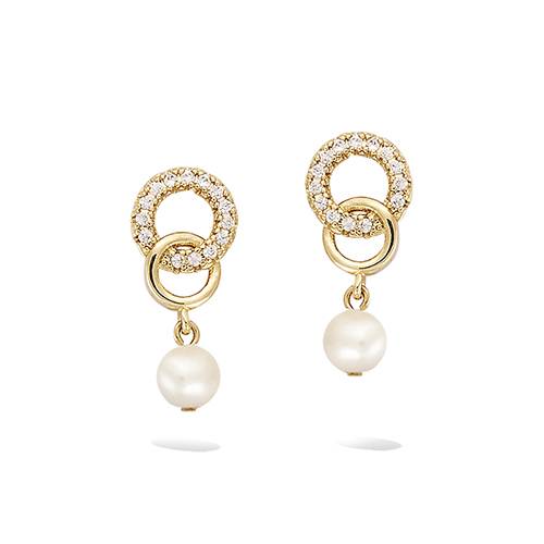 46 € - Boucles d’oreilles pendantes perle blanche - Plaqué Or