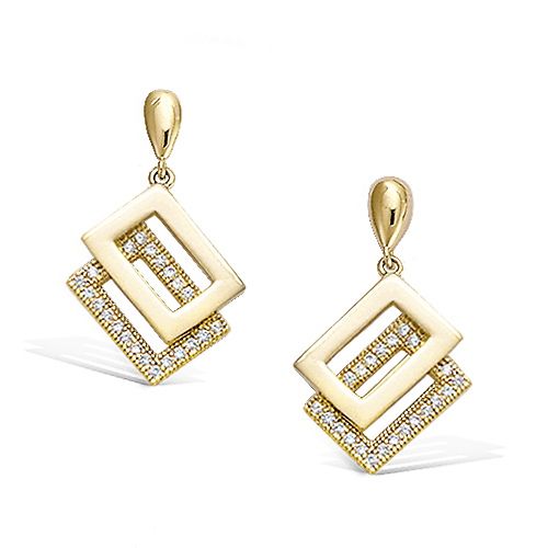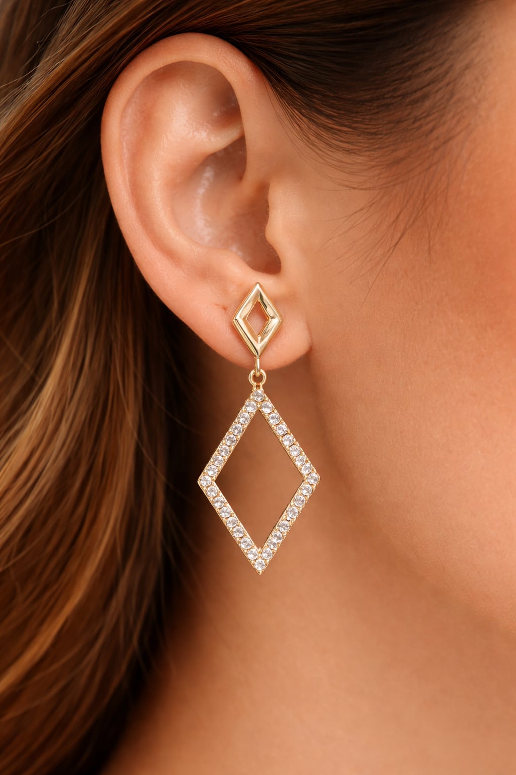 34 € - Boucles d’oreilles pendantes losanges ajourées oxydes blancs - Plaqué Or