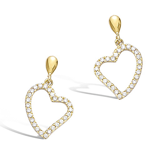 28 € - Boucles d’oreilles pendantes cœur évidé zirconiums - Plaqué Or