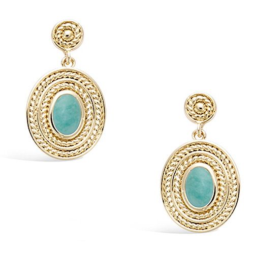 42 € - Boucles d’oreilles pendantes ovales amazonite naturelle - Plaqué Or