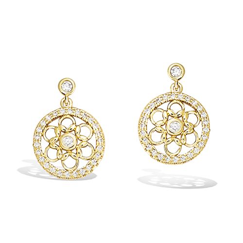 28 € - Boucles d’oreilles pendantes jardin fleuri oxydes - Plaqué Or