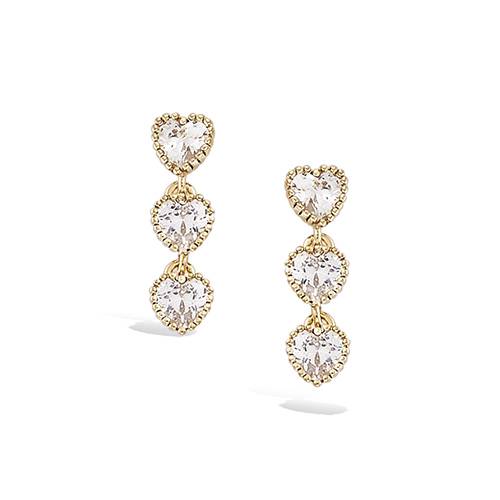 46 € - Boucles d'oreilles pendantes trio cœurs oxydes blancs - Plaqué Or