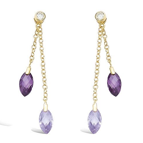 53 € - Boucles d’oreilles pendantes rondes améthystes - Plaqué Or
