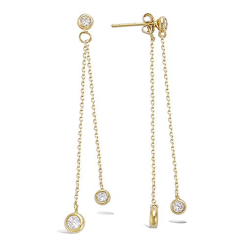 60 € - Boucles d’oreilles pendantes oxydes blancs diamètre 6 mm - Plaqué Or