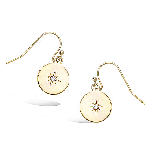 37 € - Boucles d’oreilles pendantes pastille étoile diamètre 12 mm - Plaqué Or