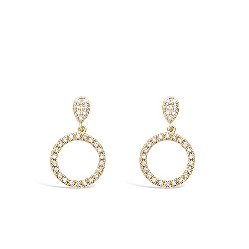 - Boucles d’oreilles pendantes cercles pavés oxydes - Plaqué Or