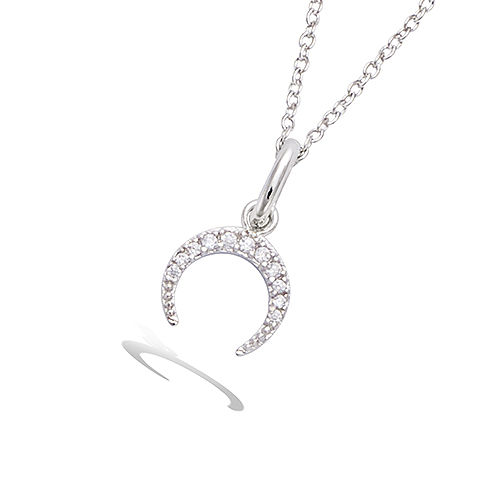 27 € - Pendentif croissant de lune oxydes blancs diamètre 9 mm - Argent 925