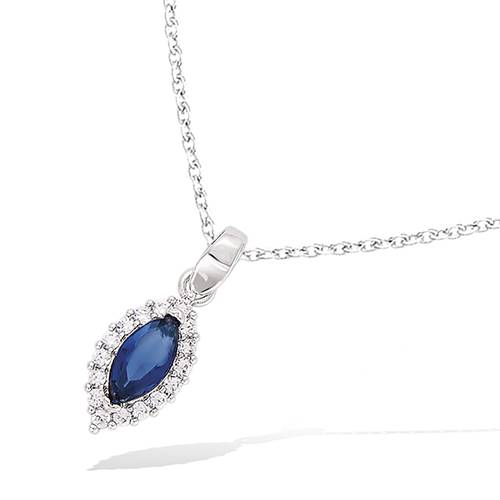 28 € - Pendentif rond marquises saphir bleu - Argent 925