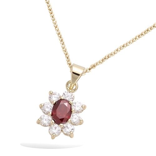 30 € - Pendentif fleur rouge rubis serti griffes - Plaqué Or