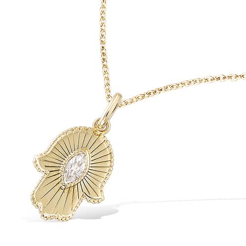 Explorez des pendentifs soigneusement choisies en plaqué or 18 carats dont la construction souligne la finesse du bijou, la justesse des proportions et l’élégance de l’ensemble.