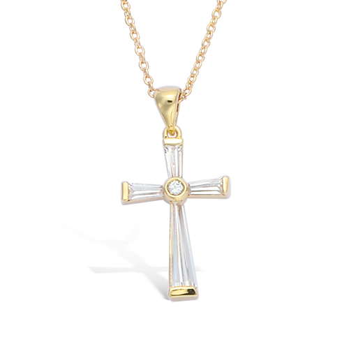 26 € - Pendentif croix baguette oxydes - Plaqué Or